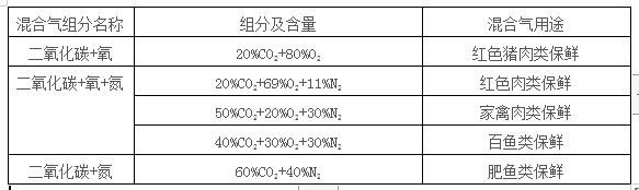 以下是肉類(lèi)常用混合氣: